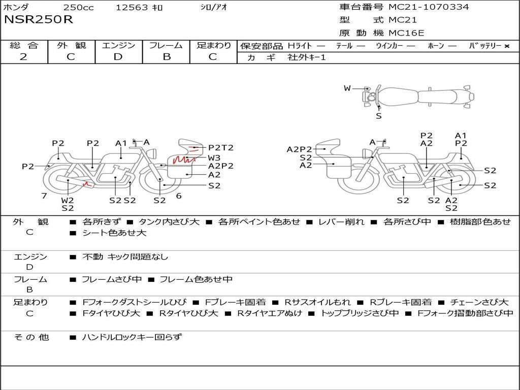 | Номер рамы / VIN | MC21-1070334 |