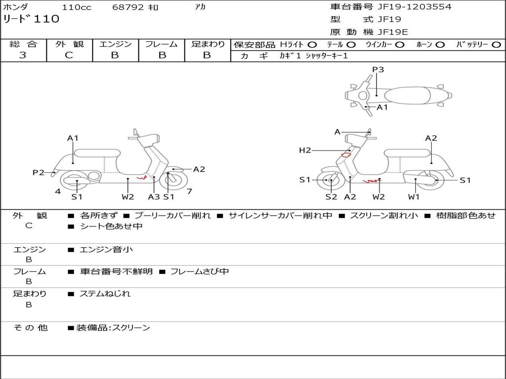 | Номер рамы / VIN | JF19-1203554 |