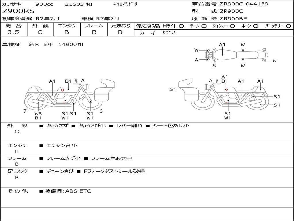 | Номер рамы / VIN | ZR900C-044139 |