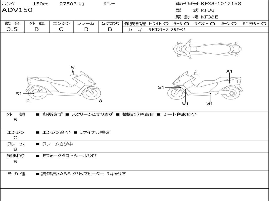 | Номер рамы / VIN | KF38-1012158 |