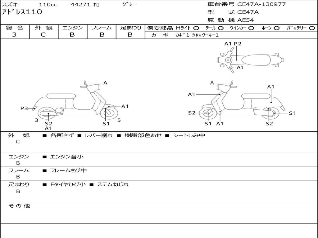 | Номер рамы / VIN | CE47A-130977 |