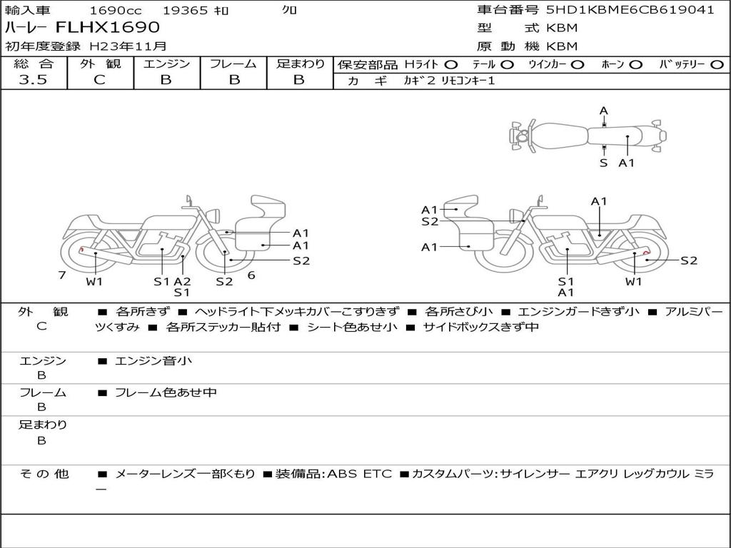 | Номер рамы / VIN | 5HD1KBME6CB619041 |