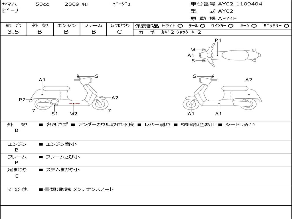 | Номер рамы / VIN | AY02-1109404 |