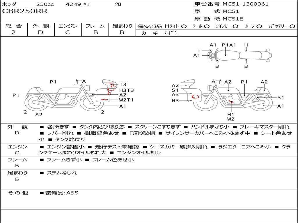 | Номер рамы / VIN | MC51-1300961 |