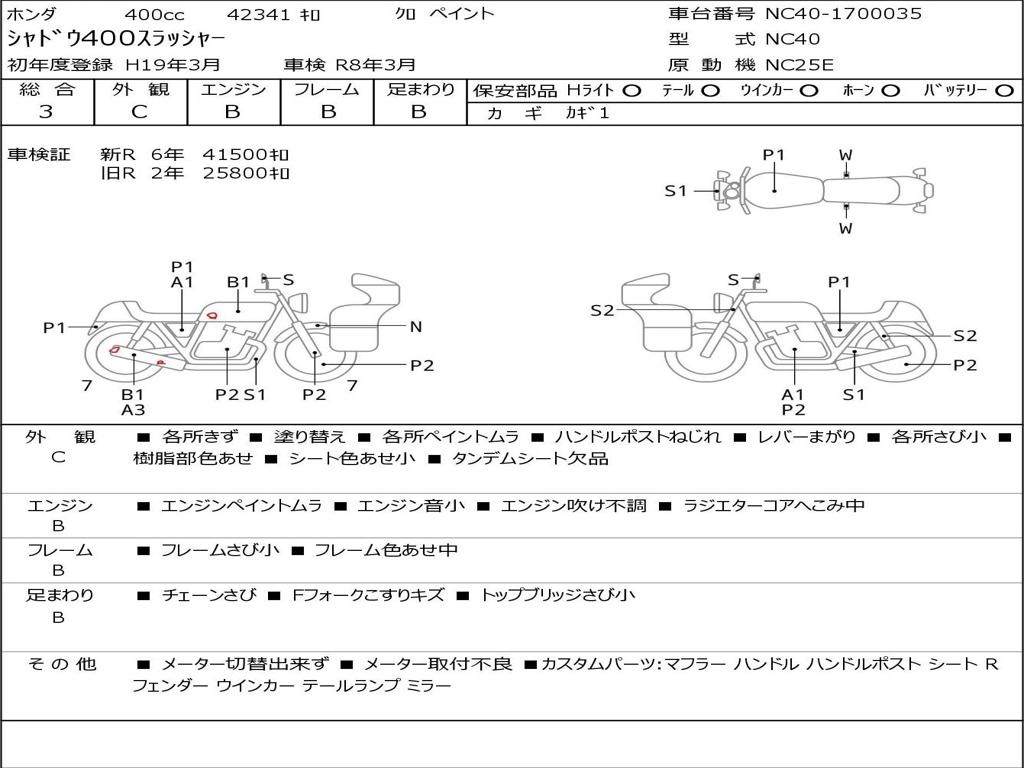 | Номер рамы / VIN | NC40-1700035 |