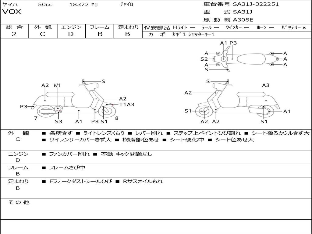 | Номер рамы / VIN | SA31J-322251 |