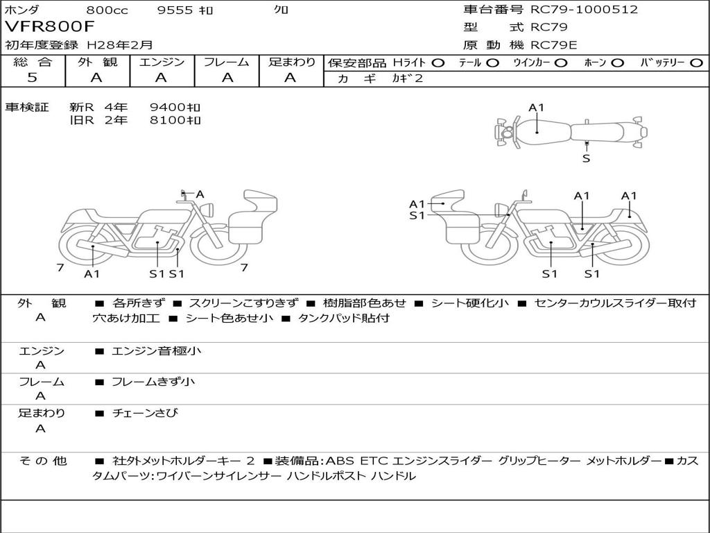 | Номер рамы / VIN | RC79-1000512 |