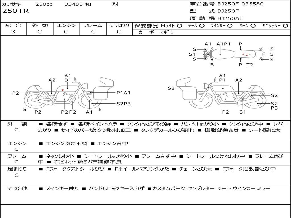 | Номер рамы / VIN | BJ250F-035580 |