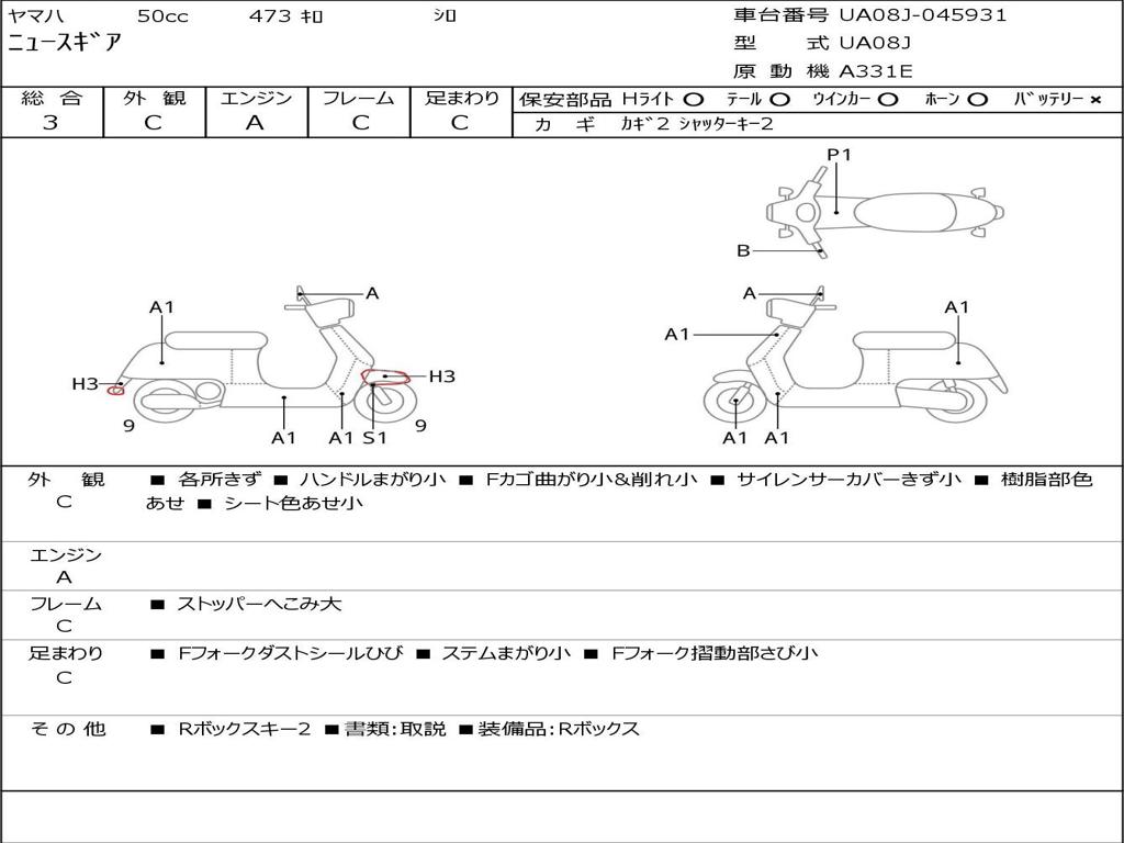 | Номер рамы / VIN | UA08J-045931 |