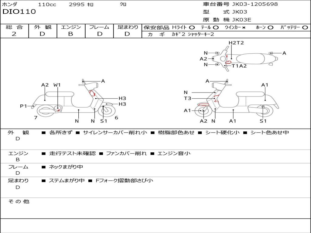 | Номер рамы / VIN | JK03-1205698 |