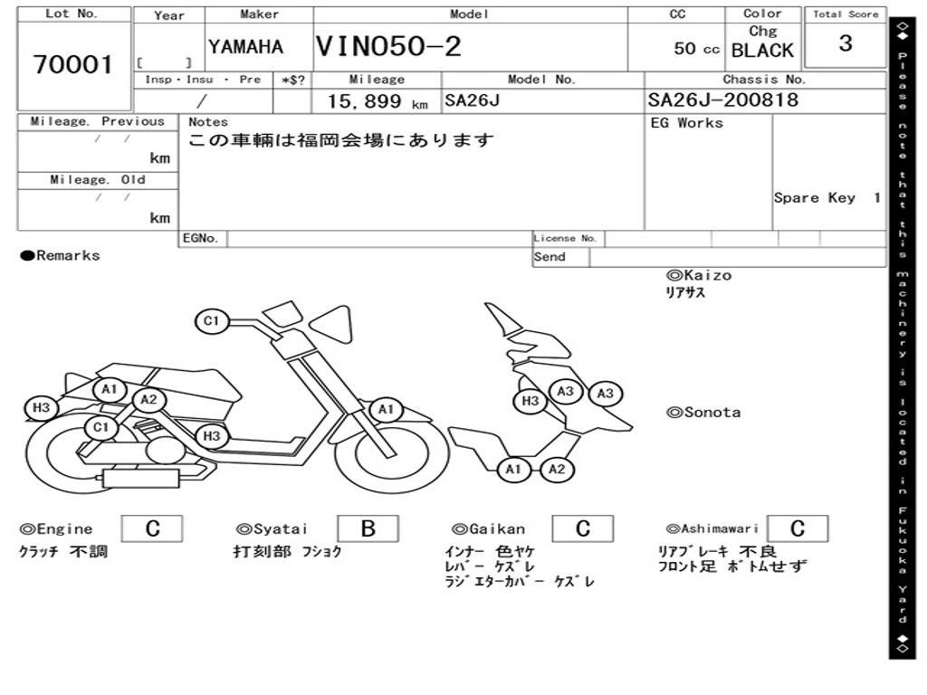 | Номер рамы / VIN | SA26J-200818 |