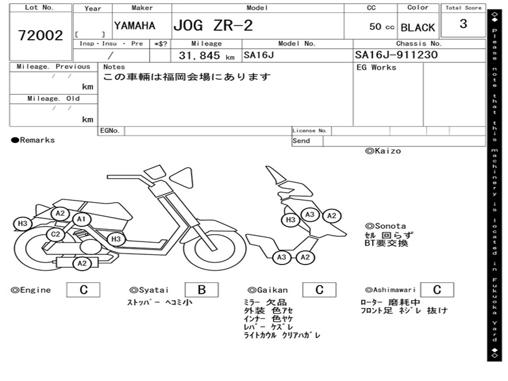 | Номер рамы / VIN | SA16J-911230 |