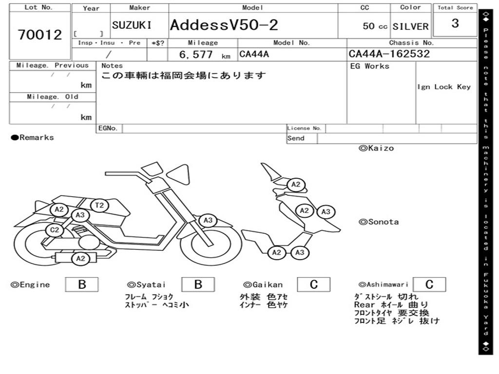 | Номер рамы / VIN | CA44A-162532 |
