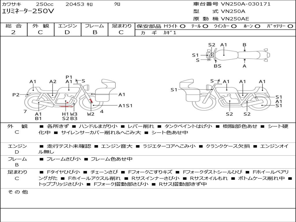 | Номер рамы / VIN | VN250A-030171 |