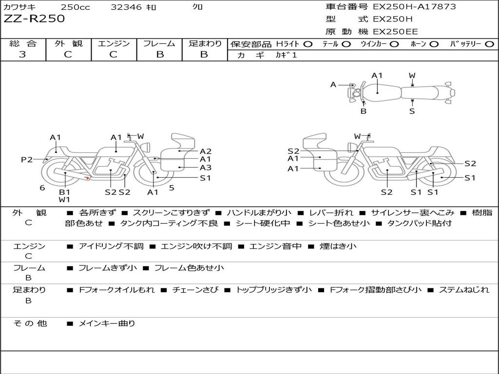 | Номер рамы / VIN | EX250H-A17873 |