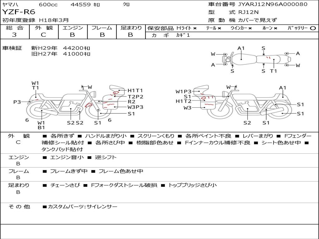 | Номер рамы / VIN | JYARJ12N96A000080 |