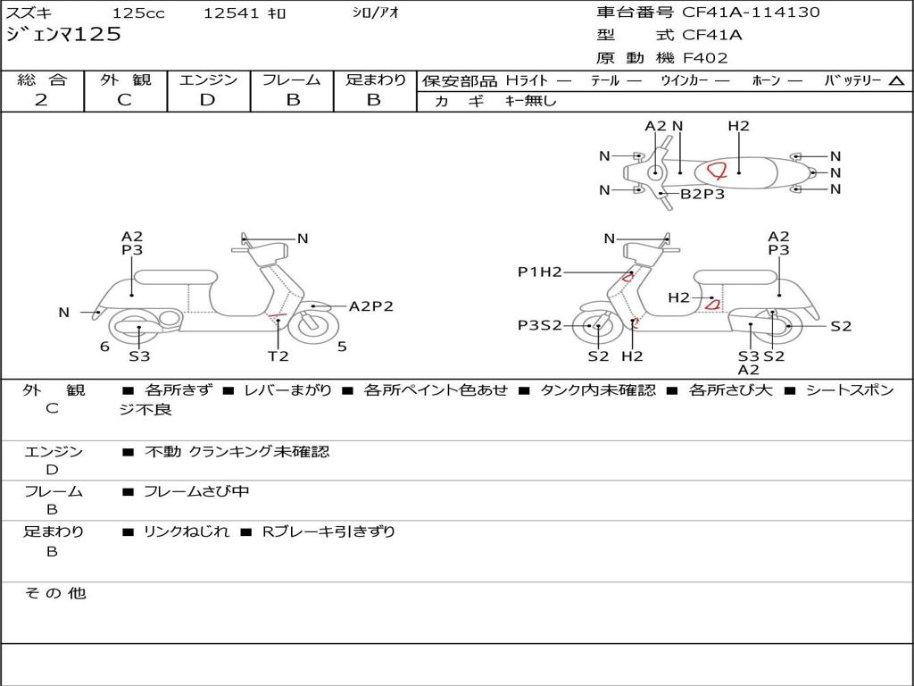 | Номер рамы / VIN | CF41A-114130 |
