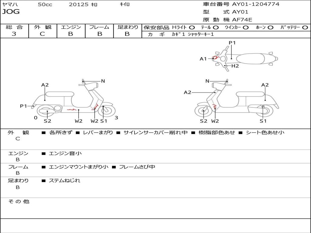 | Номер рамы / VIN | AY01-1204774 |