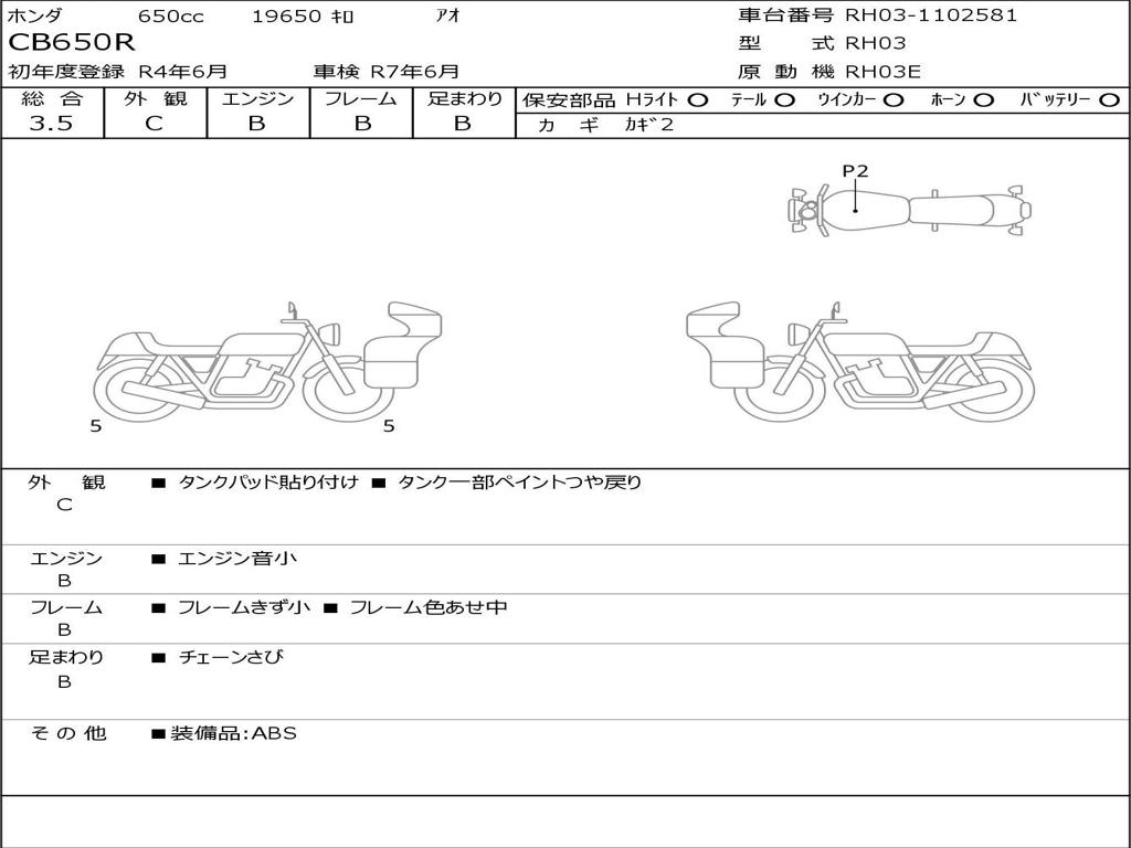 | Номер рамы / VIN | RH03-1102581 |