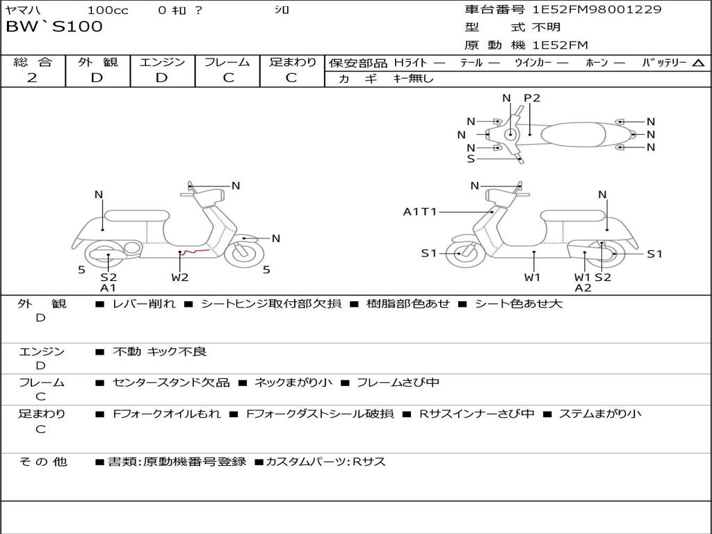 | Номер рамы / VIN | 1E52FM98001229 |