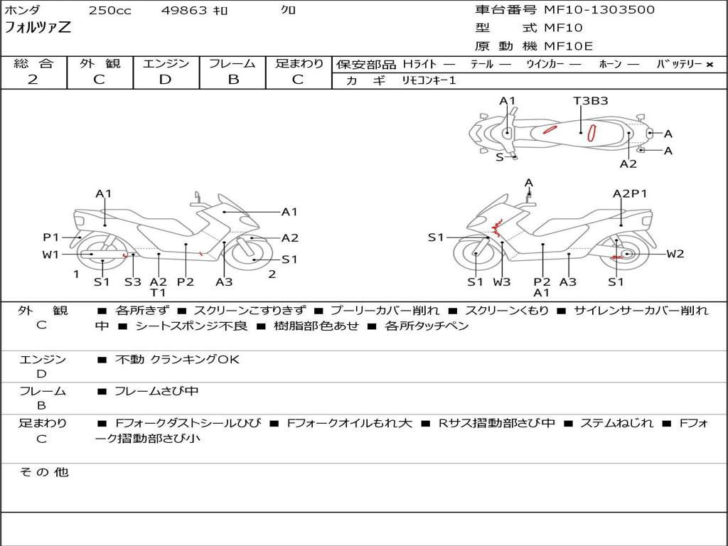 | Номер рамы / VIN | MF10-1303500 |