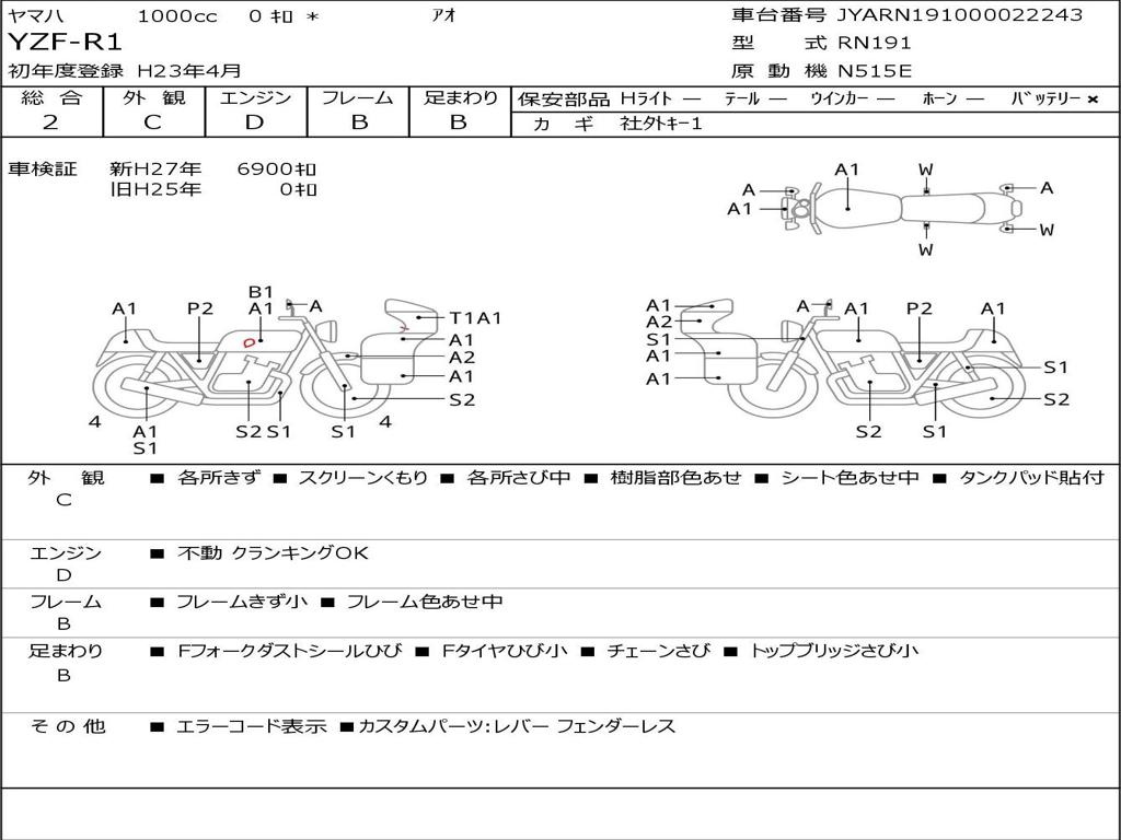 | Номер рамы / VIN | JYARN191000022243 |