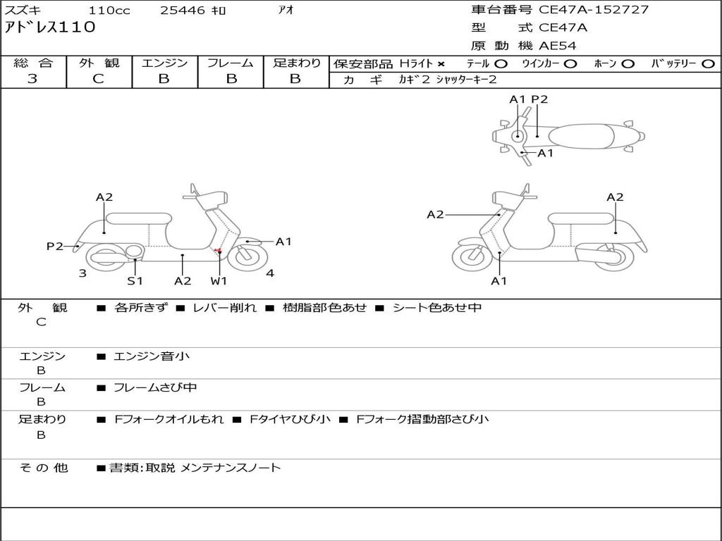 | Номер рамы / VIN | CE47A-152727 |