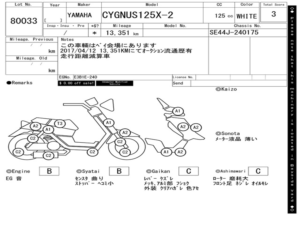| Номер рамы / VIN | SE44J-240175 |