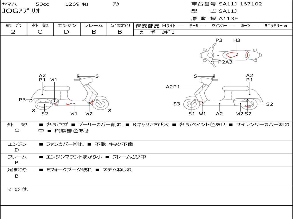| Номер рамы / VIN | SA11J-167102 |