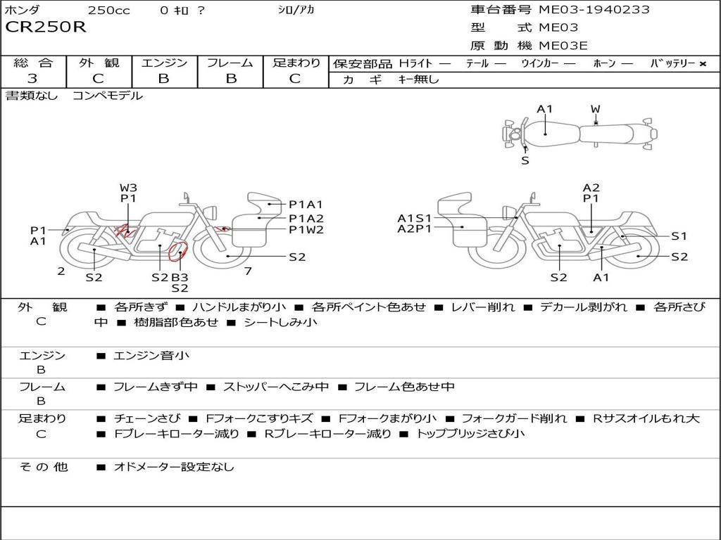 | Номер рамы / VIN | ME03-1940233 |