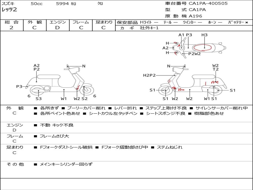 | Номер рамы / VIN | CA1PA-400505 |