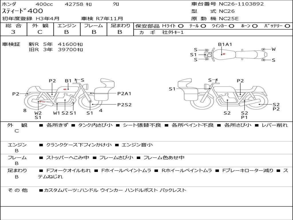 | Номер рамы / VIN | NC26-1103892 |