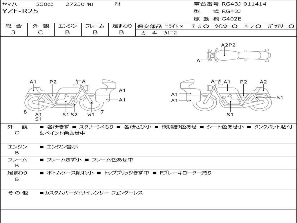 | Номер рамы / VIN | RG43J-011414 |