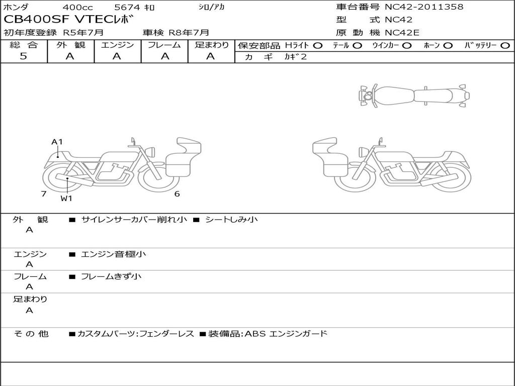 | Номер рамы / VIN | NC42-2011358 |