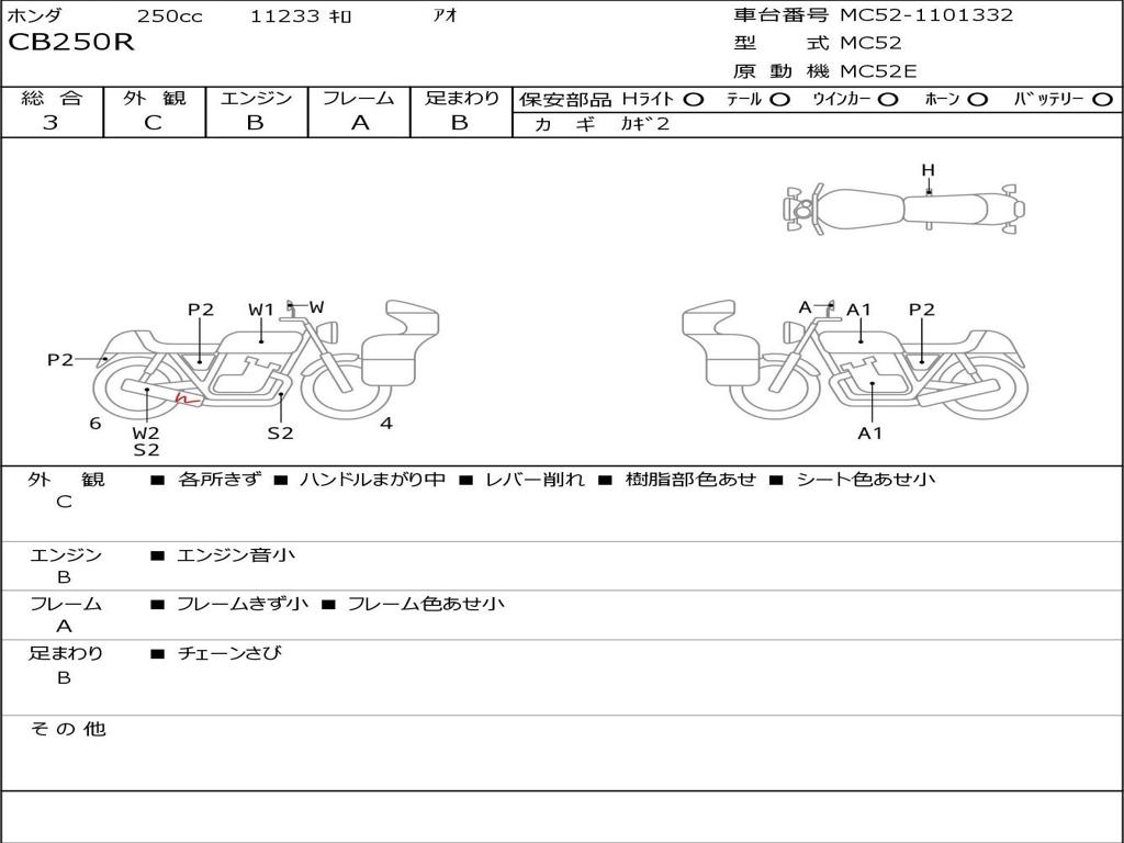 | Номер рамы / VIN | MC52-1101332 |