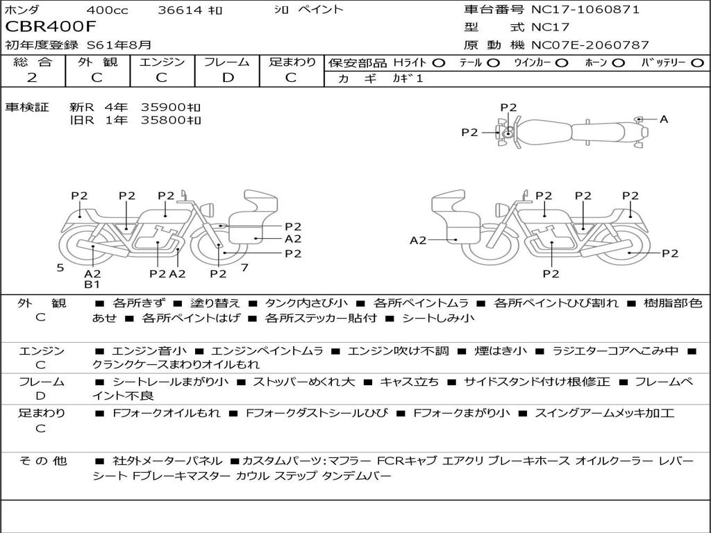 | Номер рамы / VIN | NC17-1060871 |