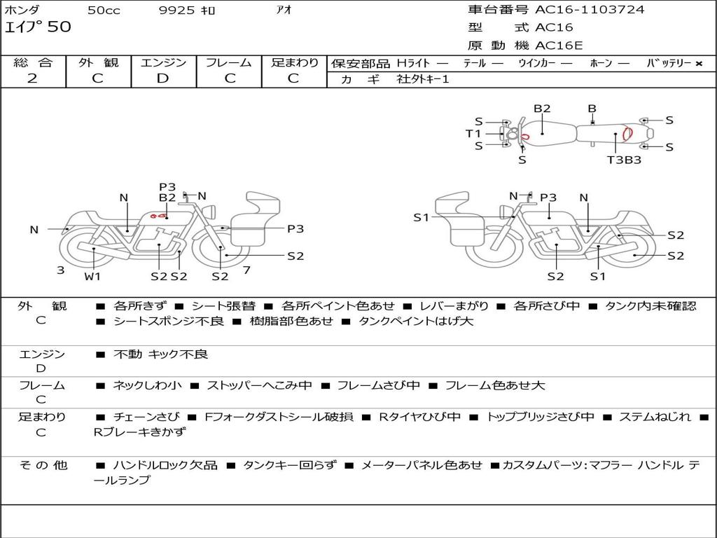 | Номер рамы / VIN | AC16-1103724 |