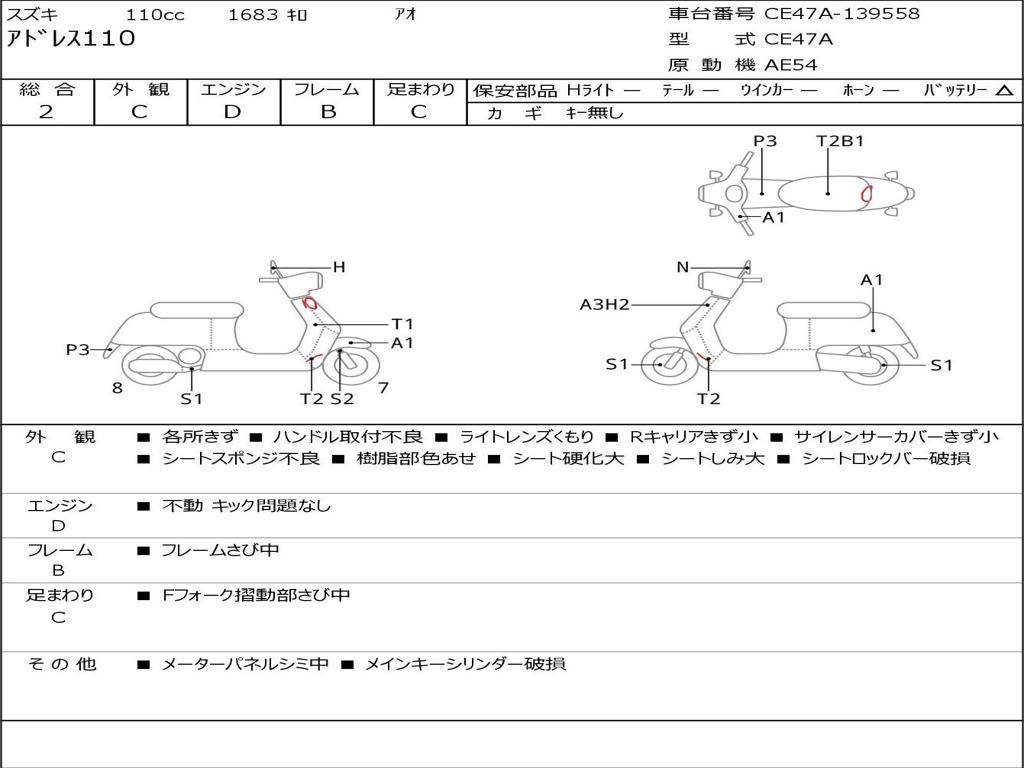 | Номер рамы / VIN | CE47A-139558 |