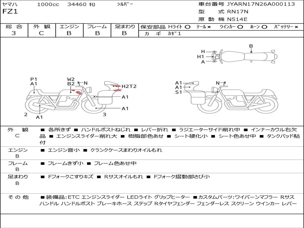 | Номер рамы / VIN | JYARN17N26A000113 |