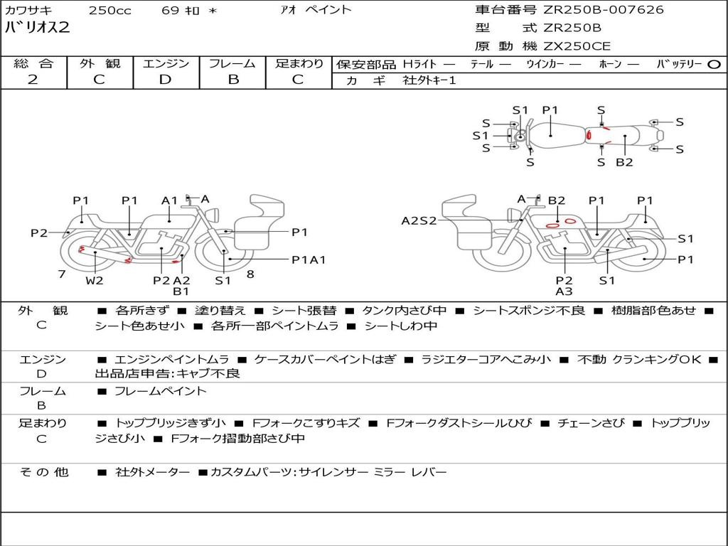 | Номер рамы / VIN | ZR250B-007626 |