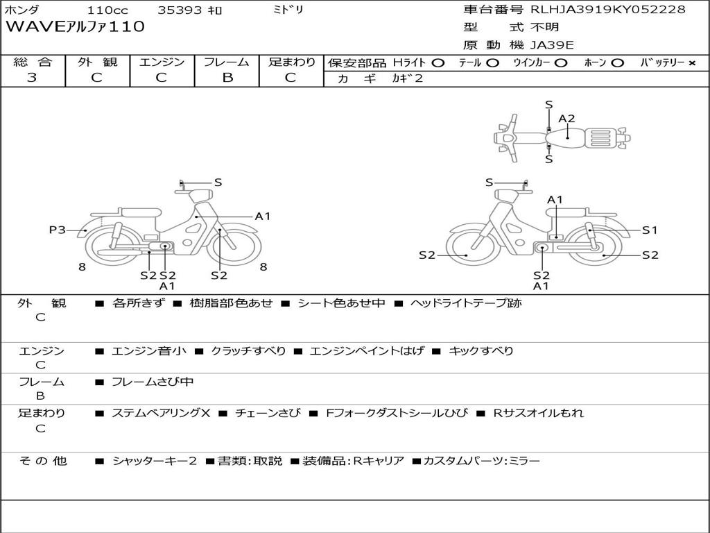 | Номер рамы / VIN | RLHJA3919KY052228 |