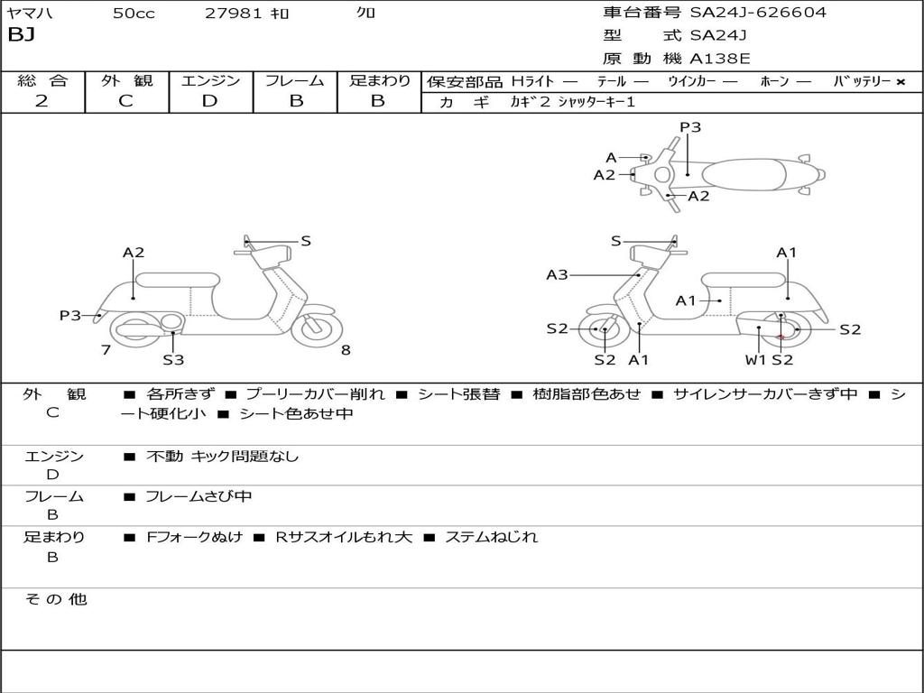 | Номер рамы / VIN | SA24J-626604 |