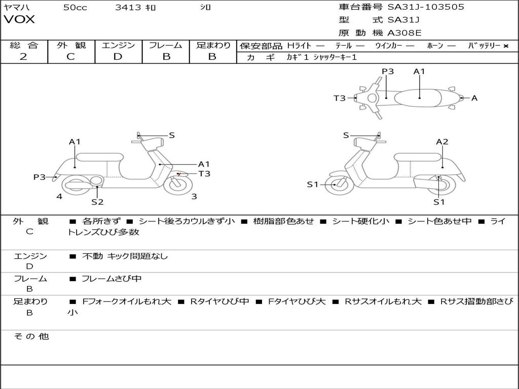| Номер рамы / VIN | SA31J-103505 |