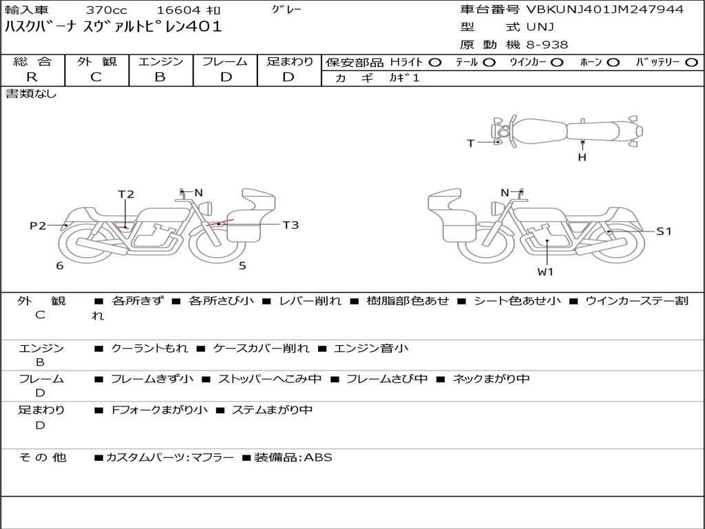 | Номер рамы / VIN | VBKUNJ401JM247944 |