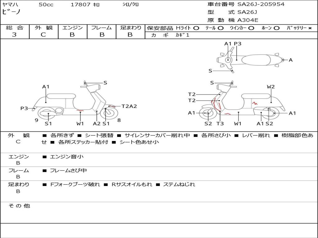 | Номер рамы / VIN | SA26J-205954 |