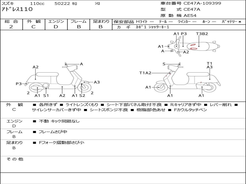 | Номер рамы / VIN | CE47A-109399 |