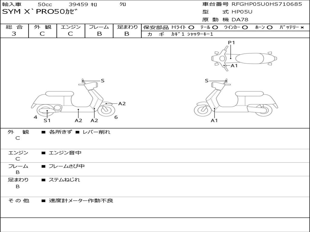 | Номер рамы / VIN | RFGHP05U0HS710685 |