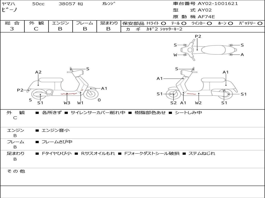 | Номер рамы / VIN | AY02-1001621 |