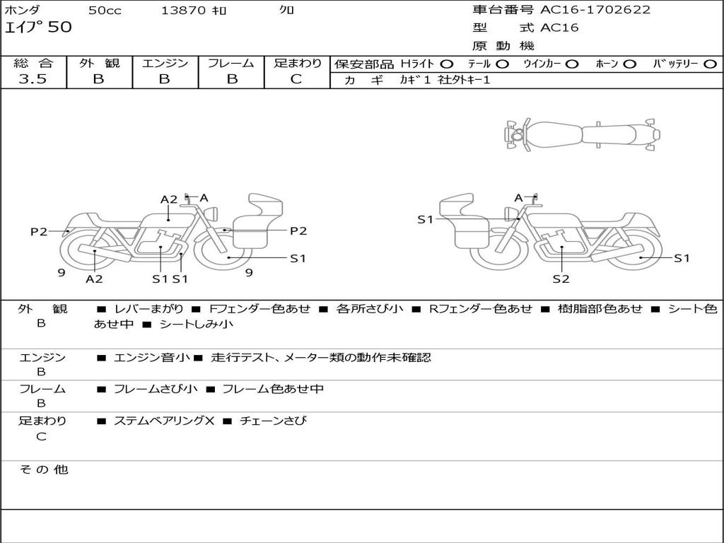 | Номер рамы / VIN | AC16-1702622 |