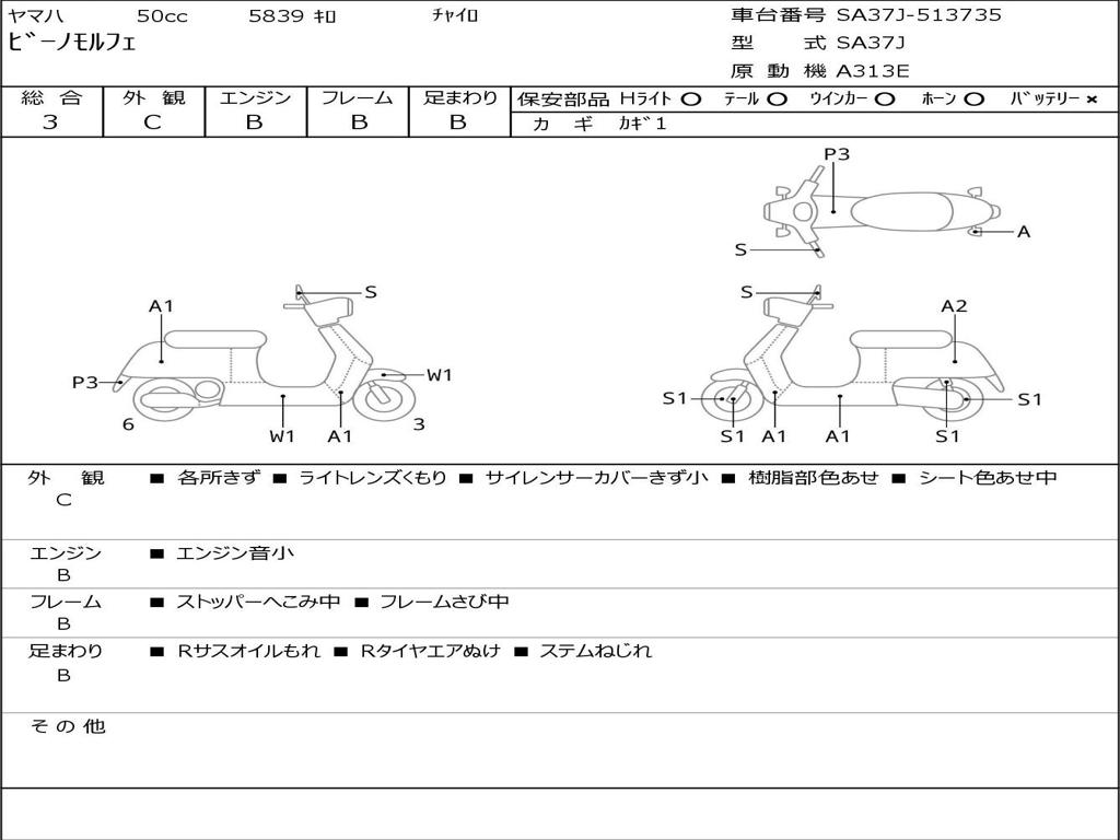 | Номер рамы / VIN | SA37J-513735 |